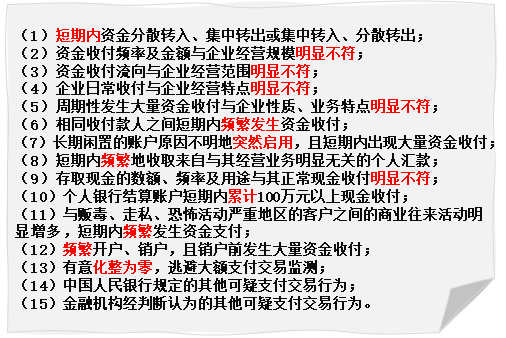 簡(jiǎn)單說(shuō),這3種情況,會(huì)被重點(diǎn)監(jiān)管!1、任何賬戶的現(xiàn)金交易,超過(guò)5萬(wàn);2、公戶轉(zhuǎn)賬,超過(guò)200萬(wàn);3、私戶轉(zhuǎn)賬超過(guò)20萬(wàn)(境外)或50萬(wàn)(境內(nèi))。